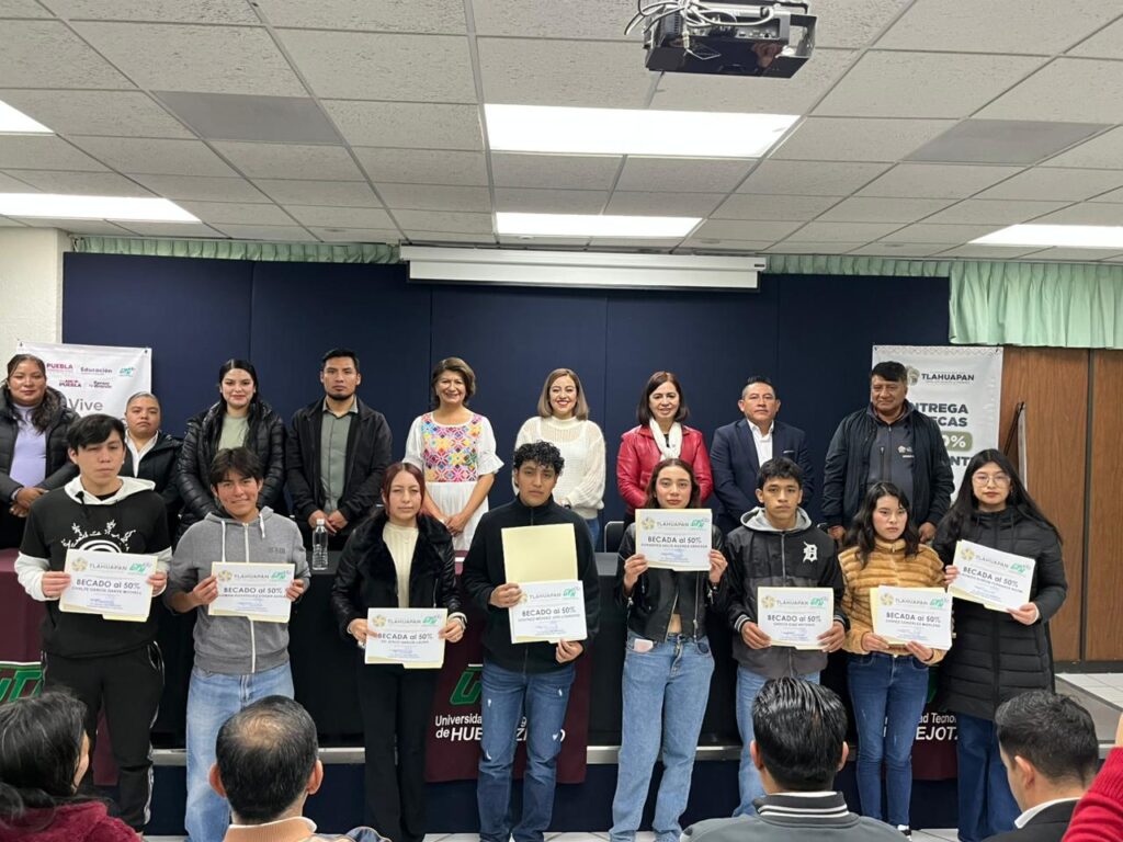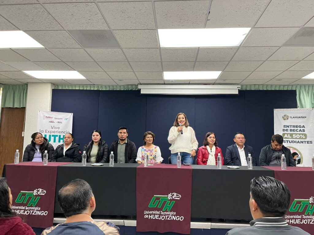 La presidenta municipal de Tlahuapan, Rosy Díaz, encabezó el protocolo de entrega de 56 becas a estudiantes originarios del municipio que cursan sus estudios en la Universidad Tecnológica de Huejotzingo (UTH), como parte del compromiso de su administración con la educación.
